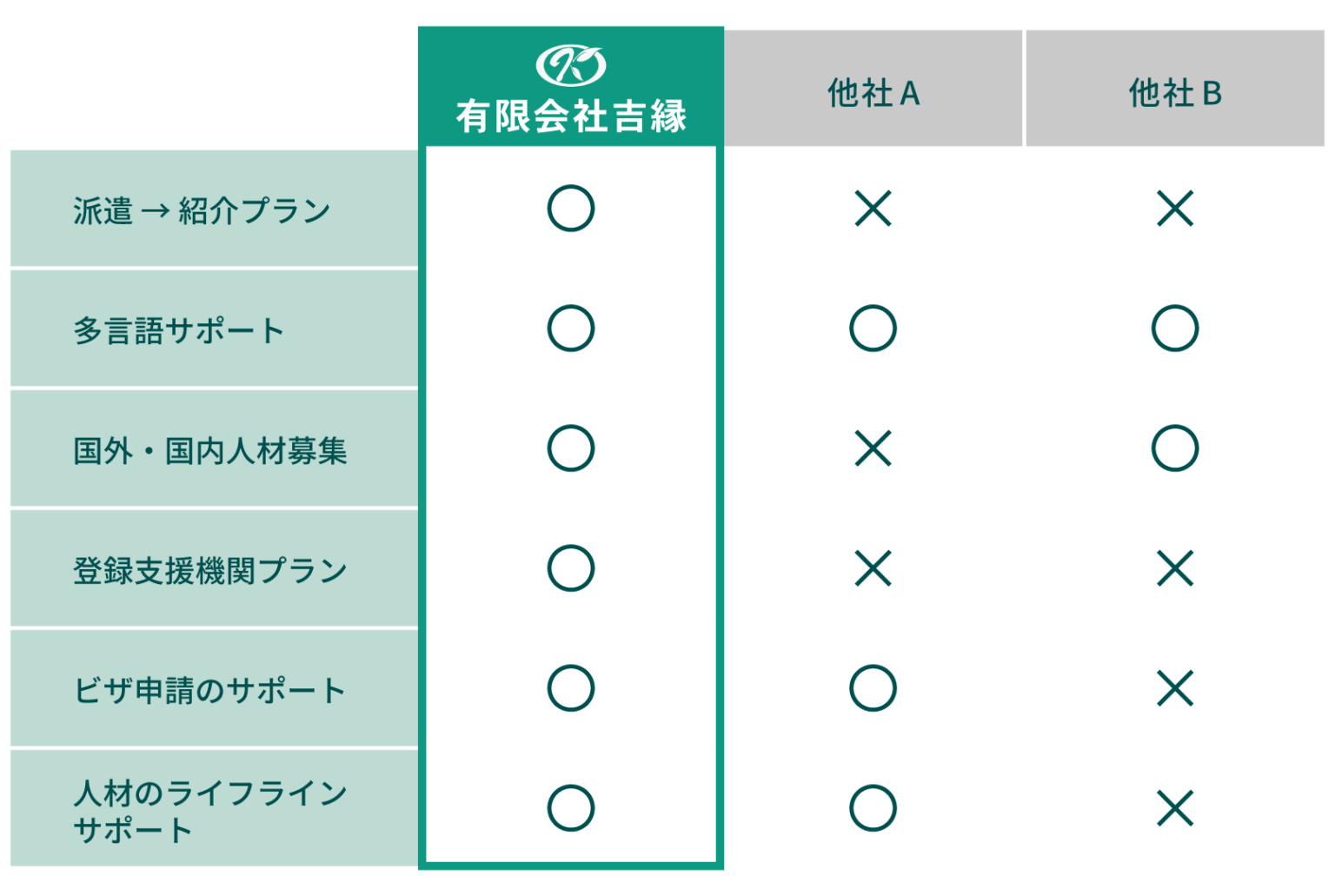 吉縁では「人材派遣」「有料人材紹介」「登録支援機関」の